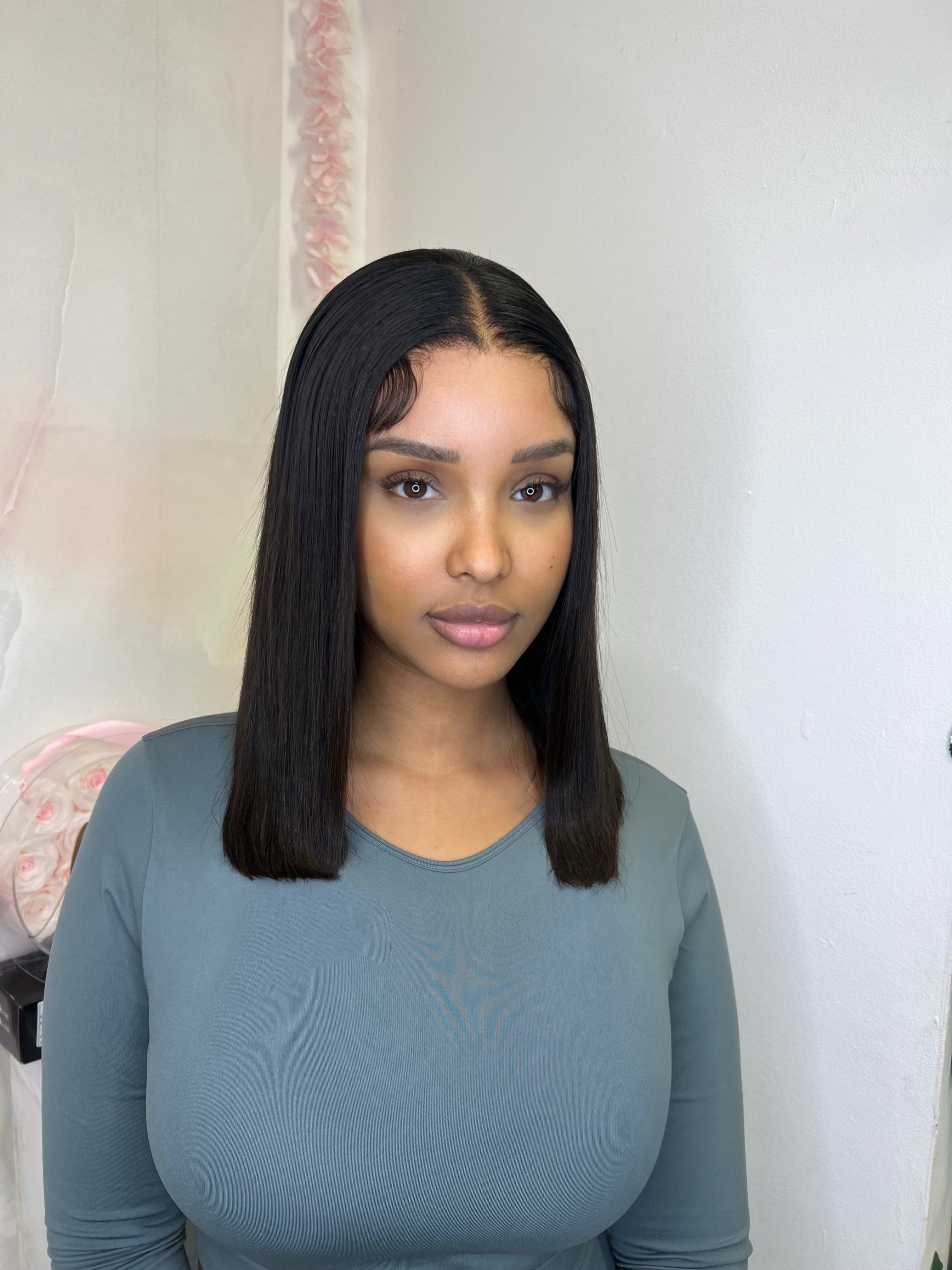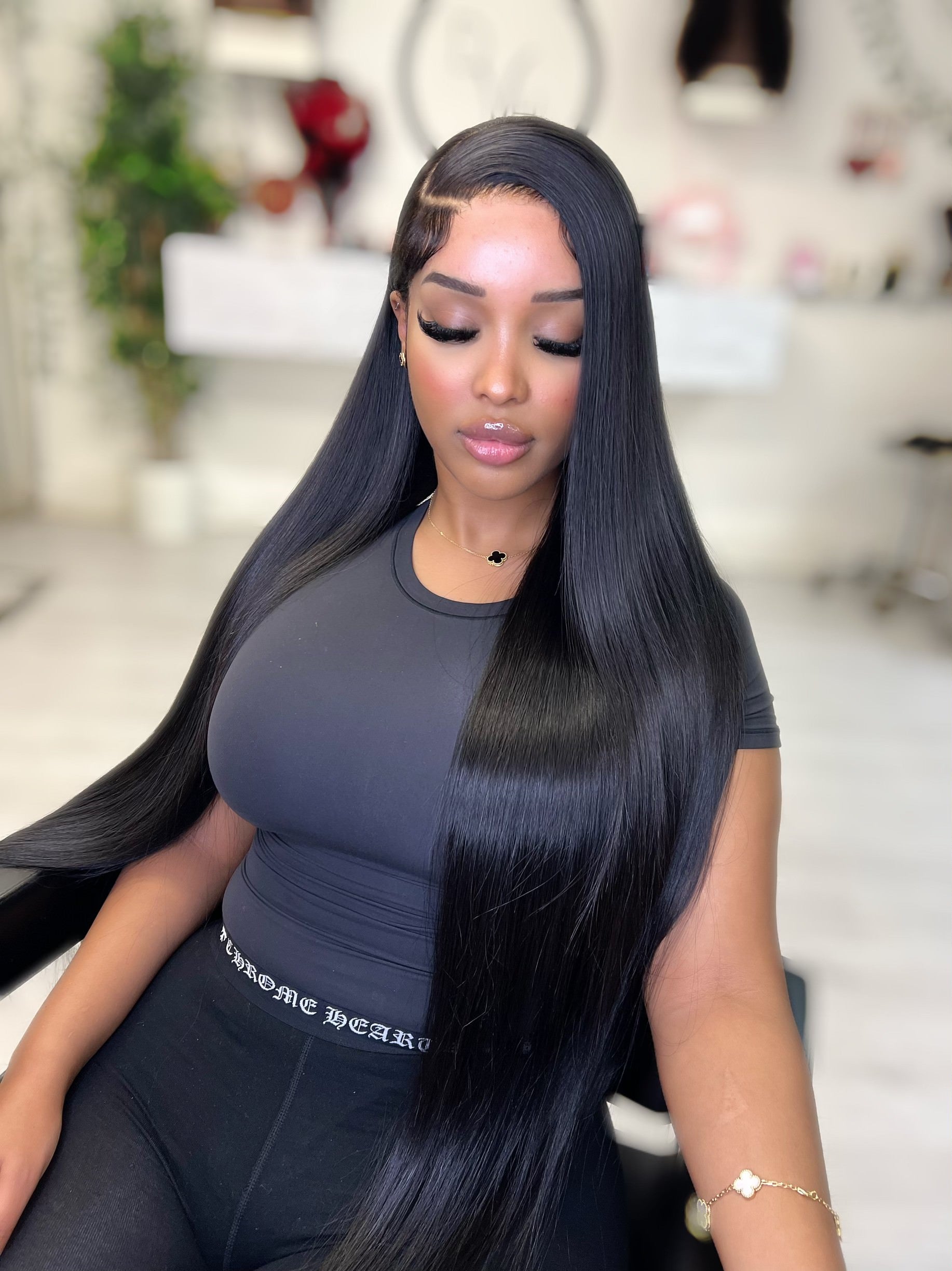 Mais raw hair will like to present you our 30" straight buss down "Kim" which is a custom wig made with the finest double drawn raw, unprocessed human hair with luxuriant thick ends. Raw hair is sourced directly from donors, ensuring that it remains in its natural state without undergoing chemical treatments. This preserves the authenticity of the hair, including its natural texture, color, and overall quality. We have the best hair quality in the market right now. Try and see for yourself.