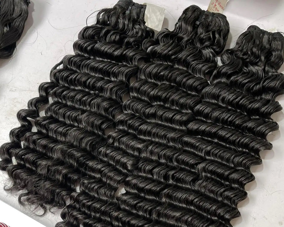 Mai's Raw Hair will like to introduce our deep wave double drawn weft hair extensions. Our double drawn bundles are crafted from the highest human hair quality quality which was sourced from healthy donors. Our MRH hair extensions retain the natural cuticles, contributing to a smooth and silky texture. Our MRH hair extensions blend seamlessly with your natural hair, thanks to the double drawn quality.
